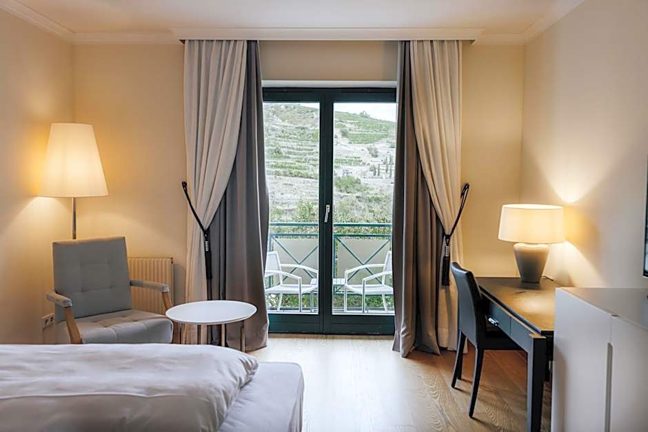 This junior suite either features a balcony overlooking the Danube Valley with its vineyards and the Göttweig Abbey, or comes with a terrace facing the vineyard garden.